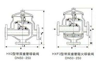 HXF2带双接管呼吸阀根据国家标准《石油化工企业设计防火规范》(GB50160-92)之规定:甲、乙类液体的固定顶罐,应设阻火器和呼吸阀。可见呼吸阀、阻火器是储罐不可缺少的安全设施。它不仅能维持储罐气压平衡,确保储罐在超压或真空时免遭破坏,且能减少罐内介质的挥发和损耗。上海完美体育·完美官方网站-完美online(中国)厂生产的呼吸阀,具有结构紧凑、通气量大、泄漏量小、密封性能好等特点。